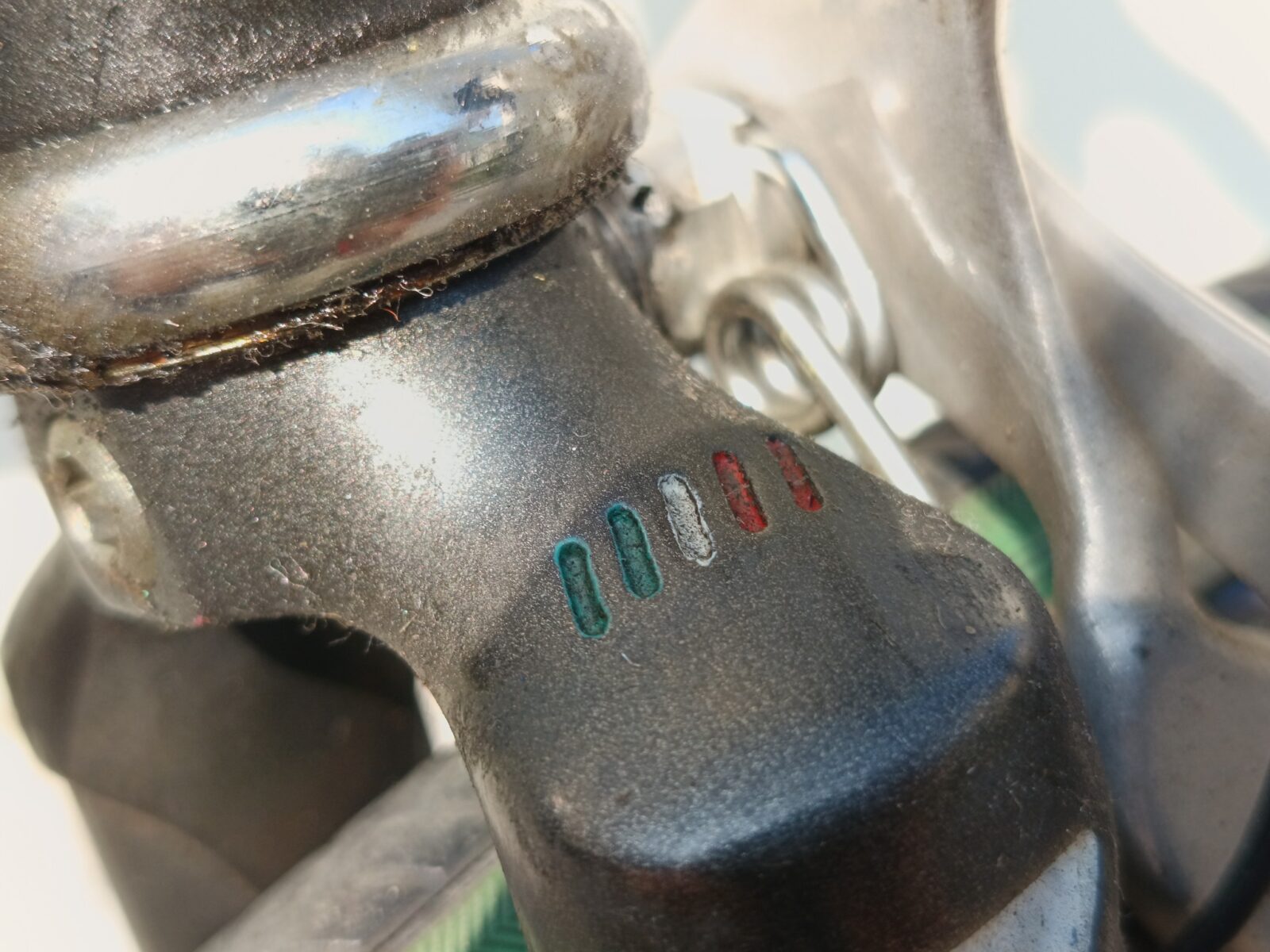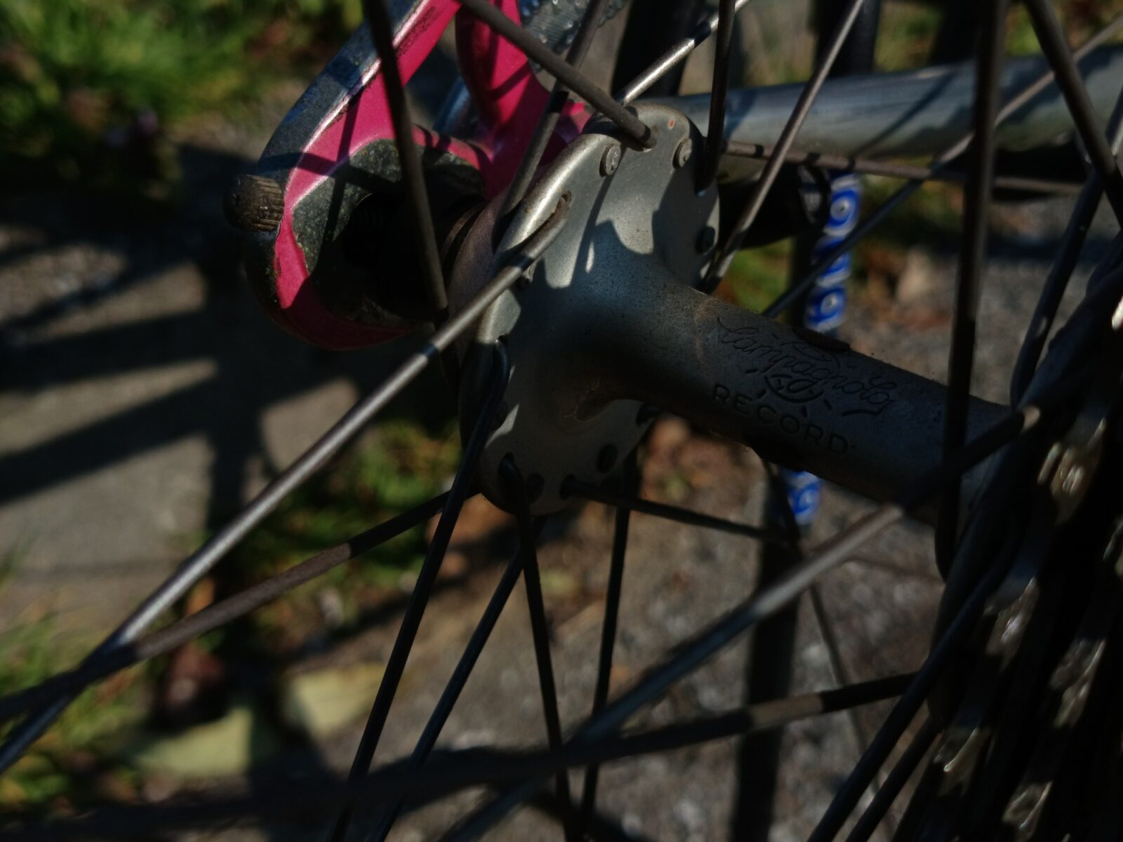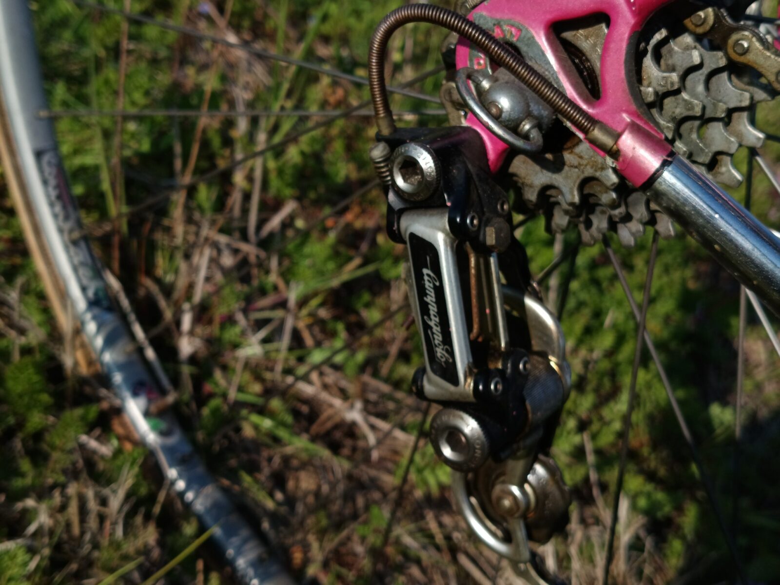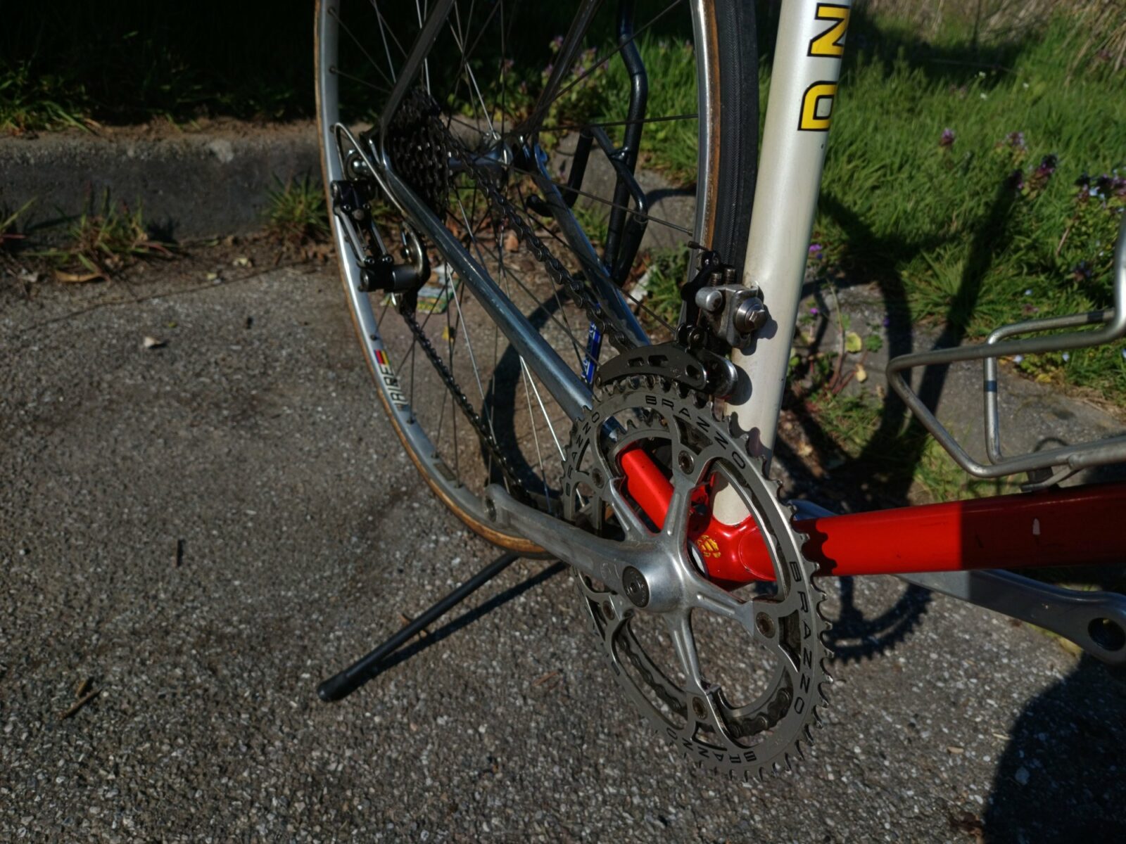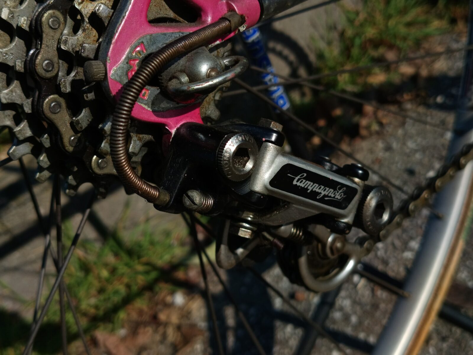 Interessante anche la forcella con adesivo Columbus, che suggerisce l’utilizzo di tubazioni di qualità, molto diffuse tra i telaisti italiani dell’epoca. Questo dettaglio rafforza l’idea di una bici pensata per essere performante ma anche durevole nel tempo.