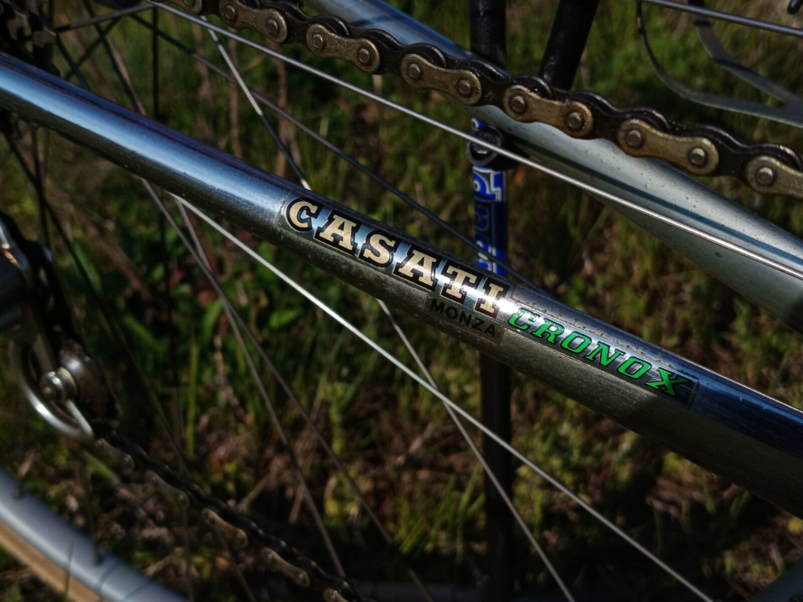 Il telaio in acciaio a congiunzioni lavorate è il cuore del progetto: si notano i dettagli sui nodi, con microlavorazioni e piccoli segni distintivi che raccontano una costruzione non industriale ma curata, quasi sartoriale. Casati ha sempre puntato su telai reattivi ma raffinati, e questa bici restituisce proprio quella sensazione di equilibrio tra rigidità e comfort tipica dell’acciaio di alta gamma.