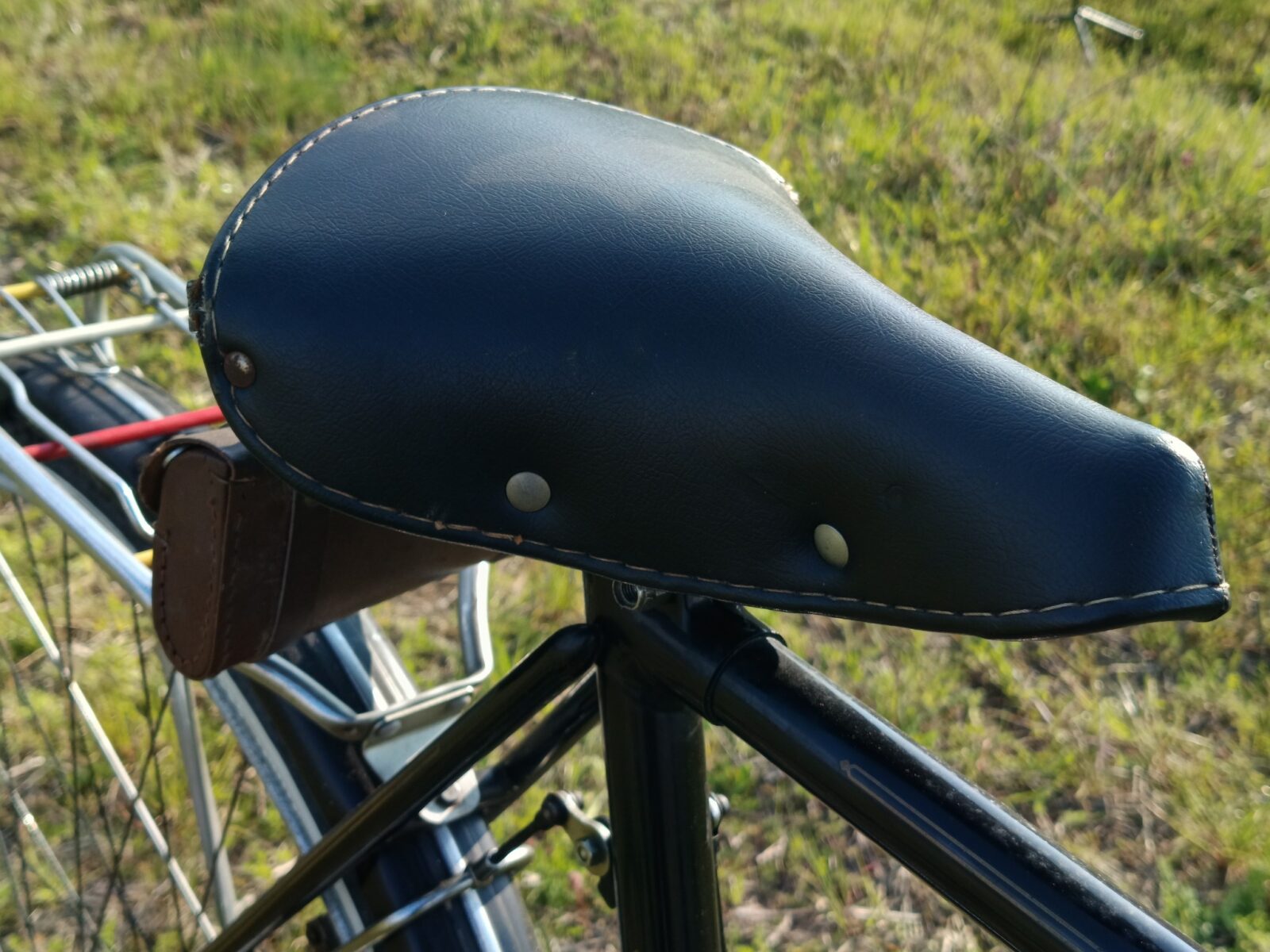 Il telaio step-through in acciaio, robusto e funzionale, è tipico delle biciclette urbane dell’epoca, progettate per un utilizzo pratico e continuo. La presenza di parafanghi pieni, carter copricatena e sella ammortizzata a molle riflette una filosofia costruttiva orientata al comfort e alla durata, pensata per accompagnare la vita di tutti i giorni.