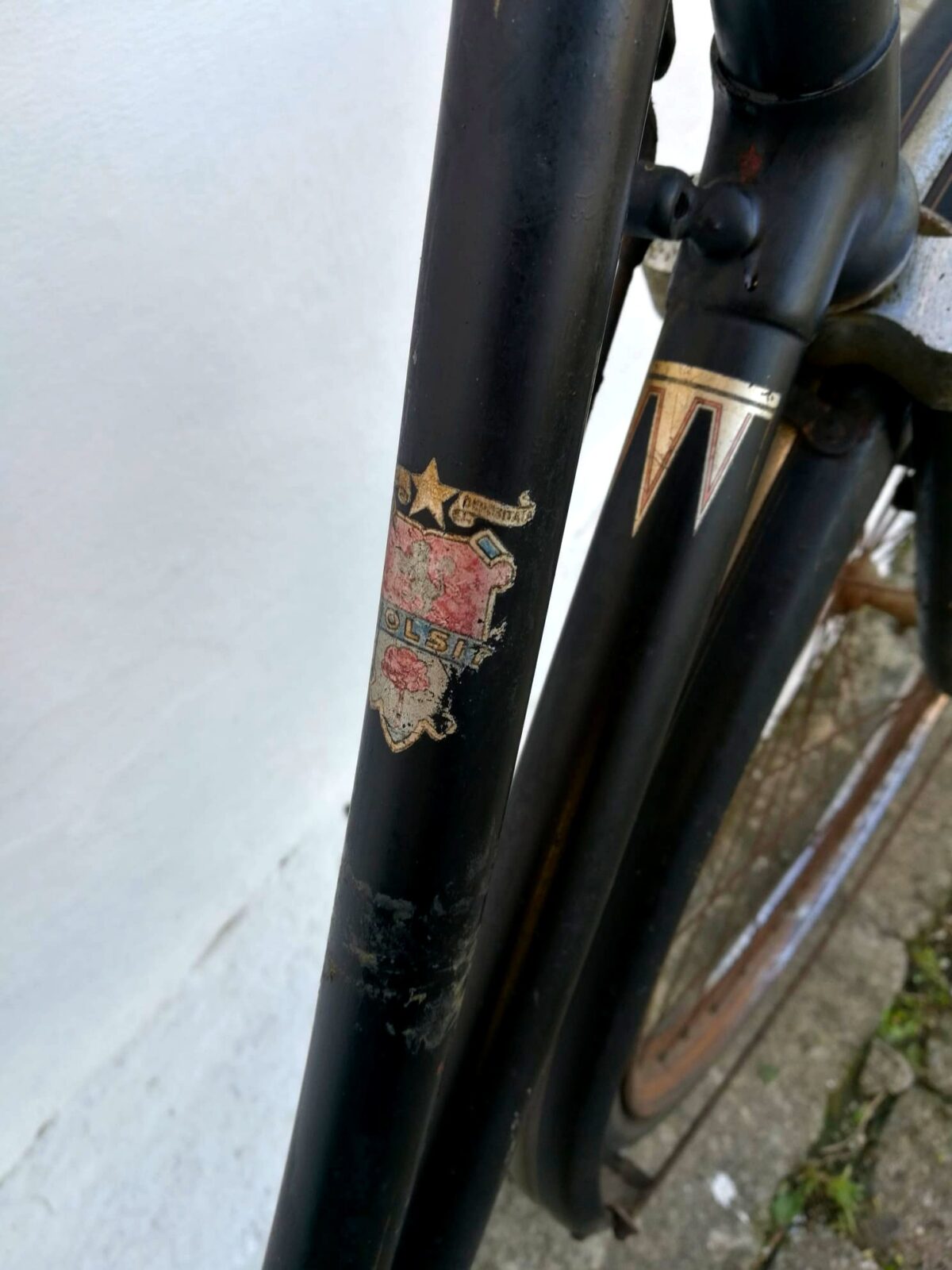 “Bicicletta d’epoca Wolsit, risalente indicativamente al secondo dopoguerra (anni ’40), prodotta nell’area milanese dove il marchio affonda le sue radici industriali. Wolsit nasce infatti nei primi del Novecento come azienda legata alla lavorazione della gomma e si inserisce nel tessuto produttivo lombardo che ha contribuito alla diffusione della bicicletta come mezzo quotidiano nelle città italiane.
